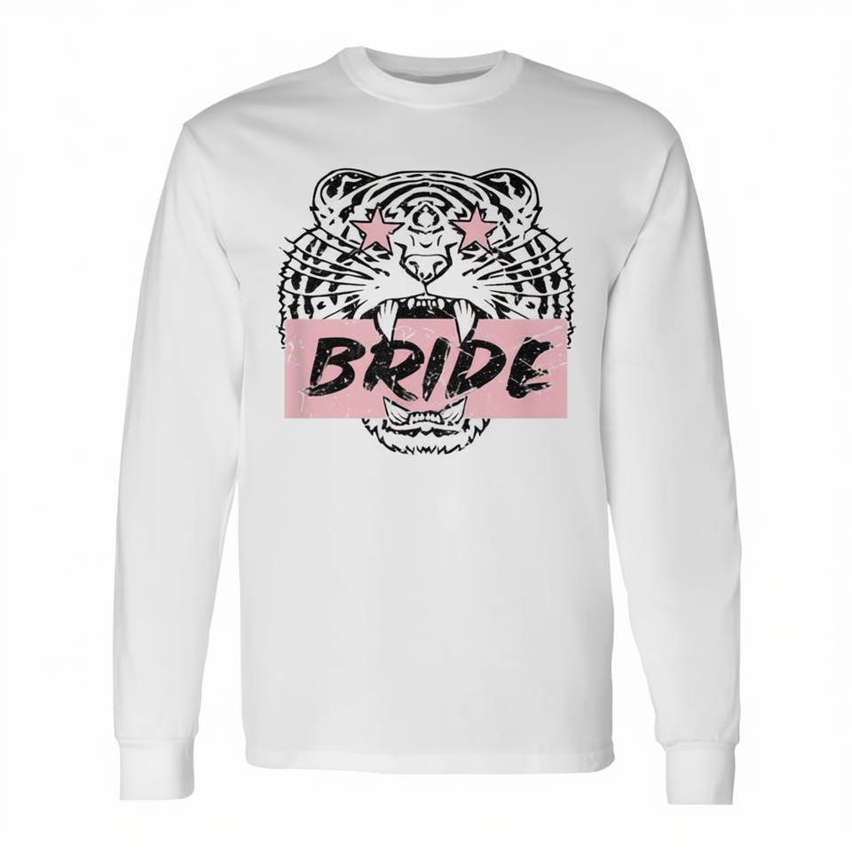 T-shirt rétro à manches longues pour mariée tigre, rose, pour enterrement de vie de jeune fille