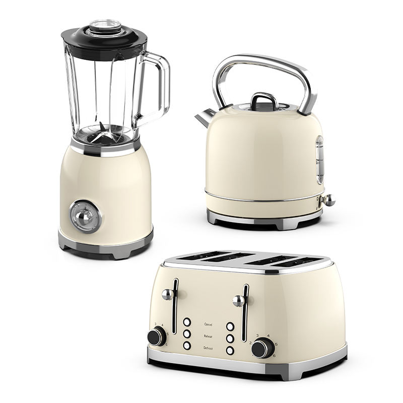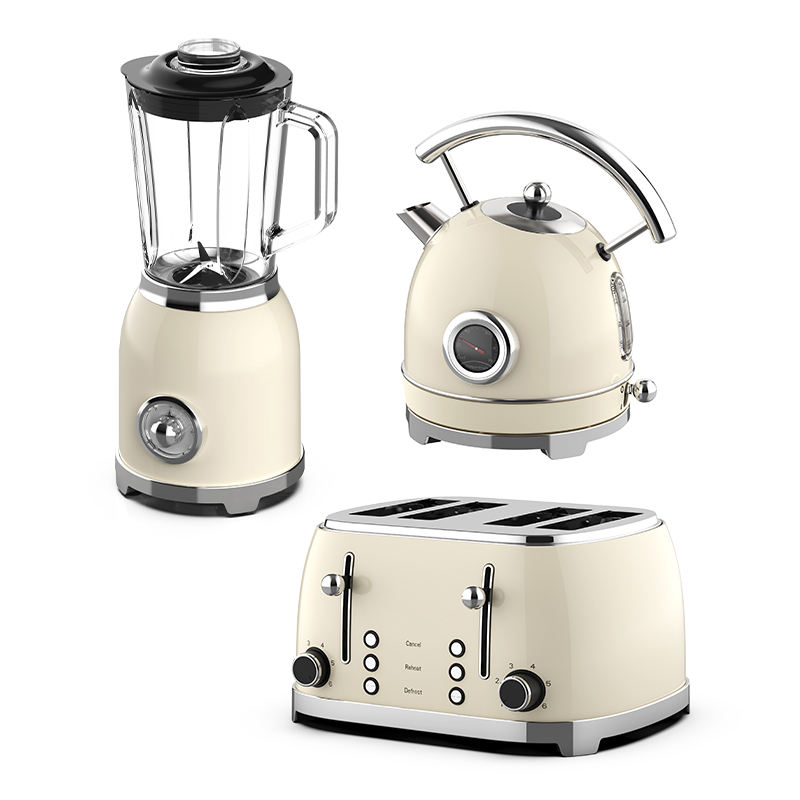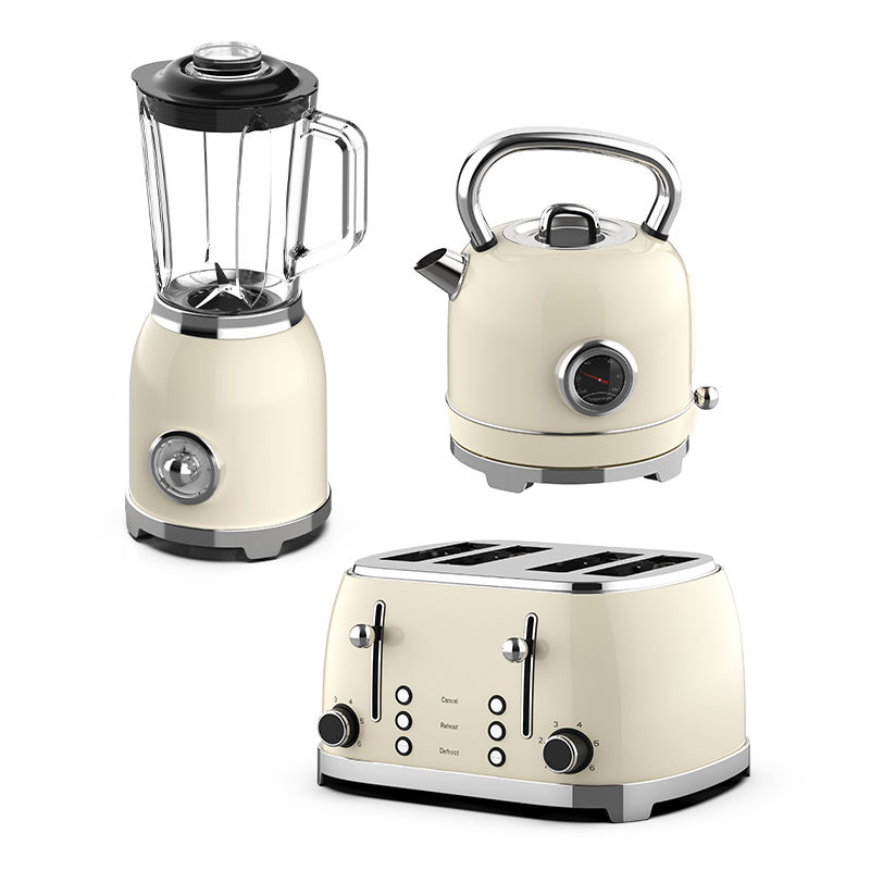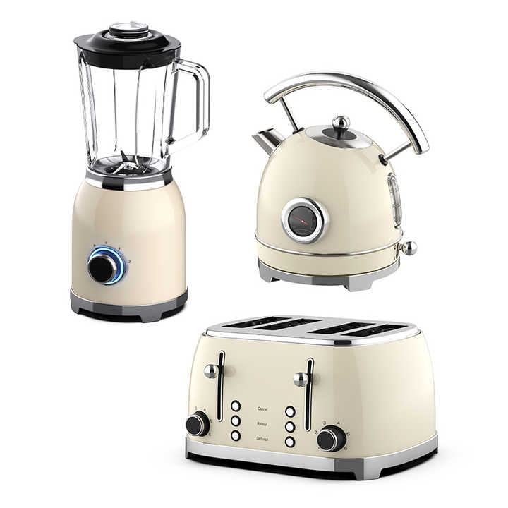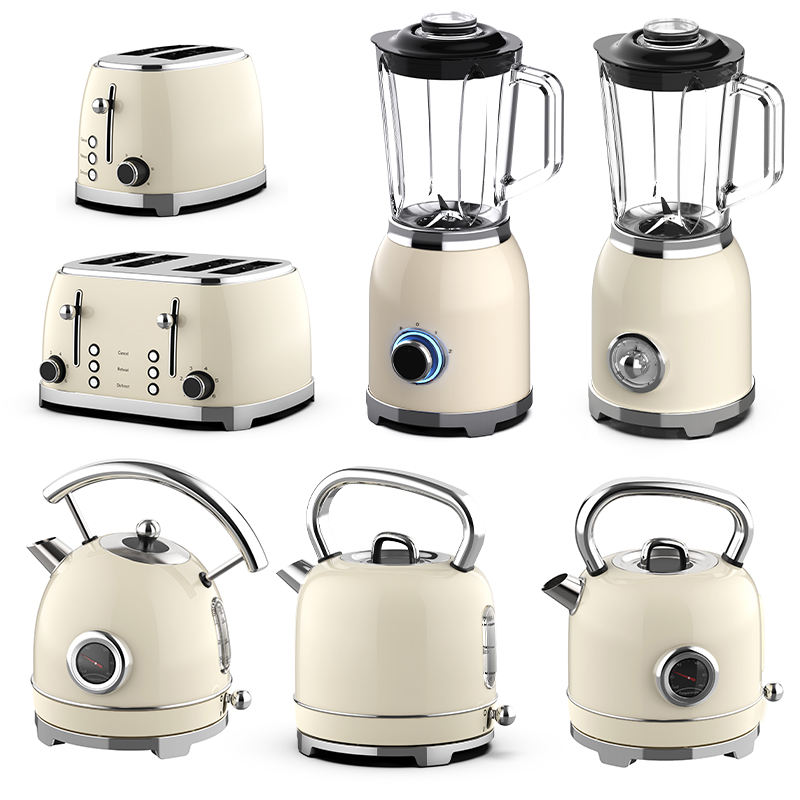 Ensemble d'appareils électroménagers rétro : grille-pain et bouilloire, mixeur électrique et grille-pain en acier inoxydable