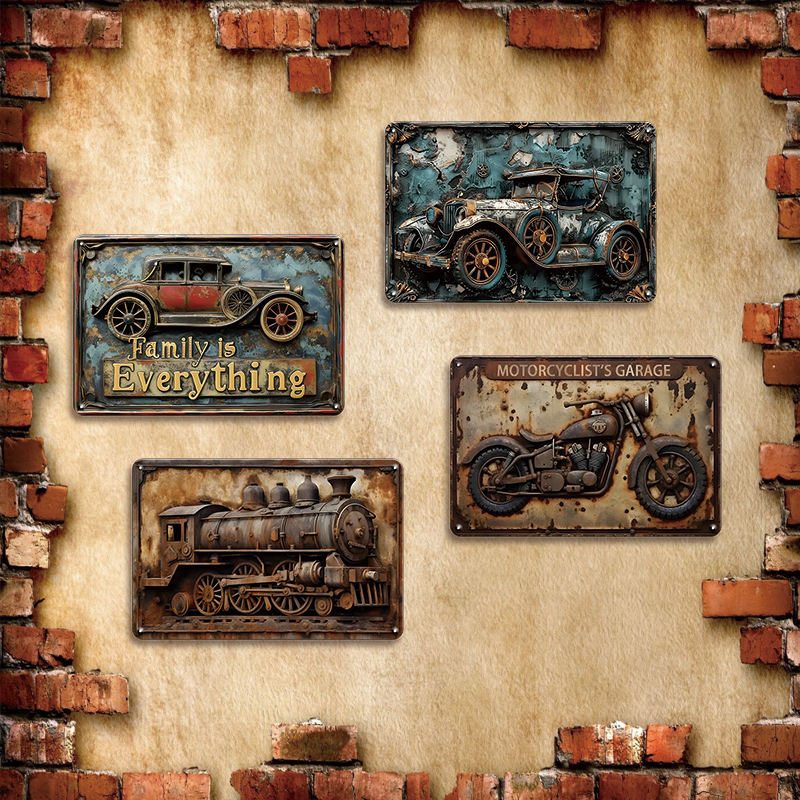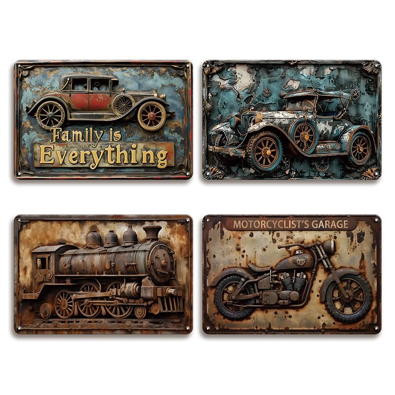 Plaque Métallique Rétro Vintage Voiture Train Moto – La Famille, C'est Tout – Décoration Murale pour Garage de Motards et Maison