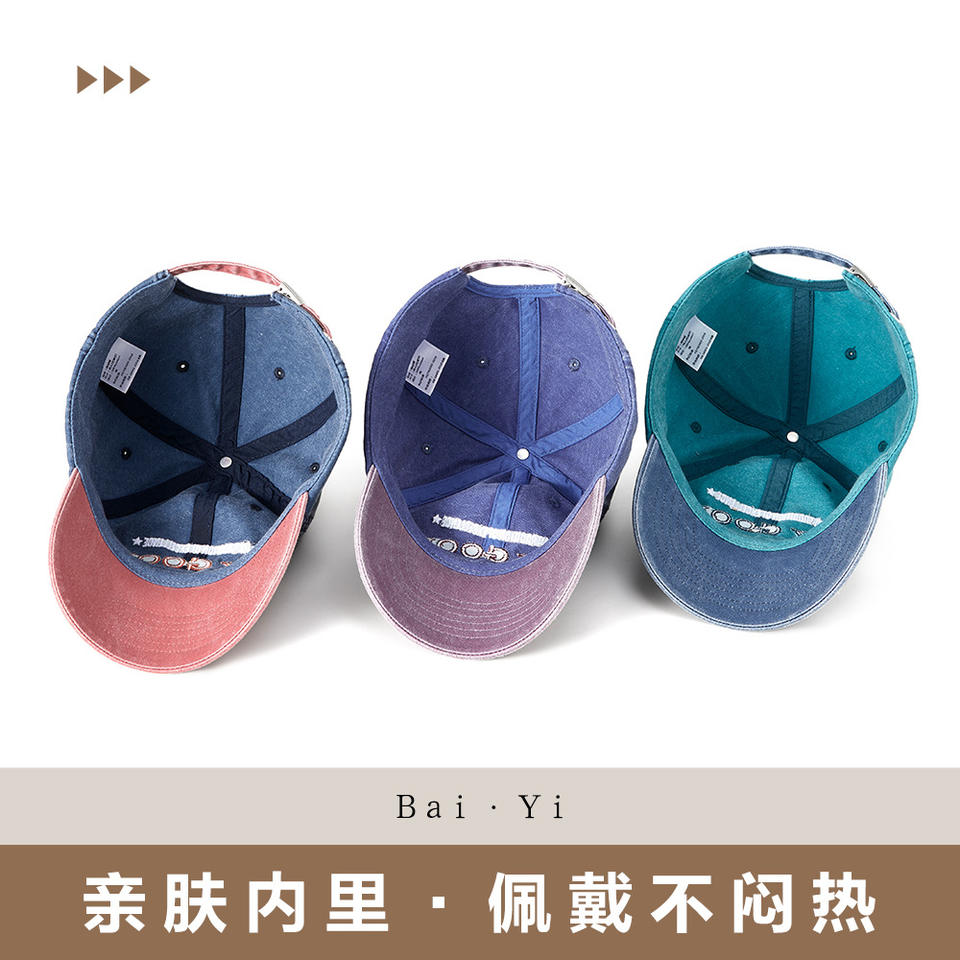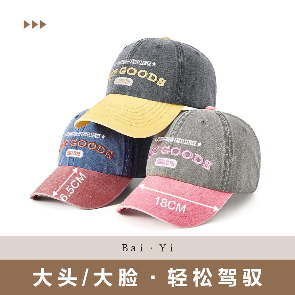 Casquette de baseball rétro délavée à blocs de couleur pour femme, chapeau en jean à visière brodé, protection solaire, style été, gris jaune