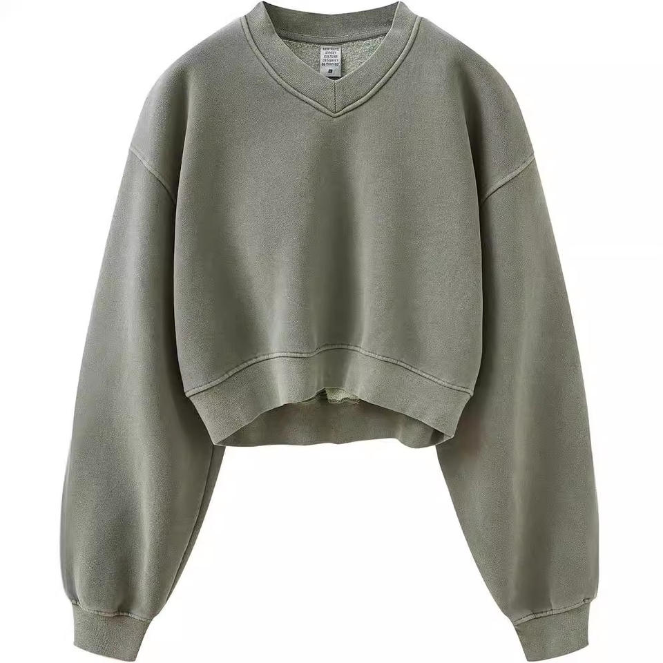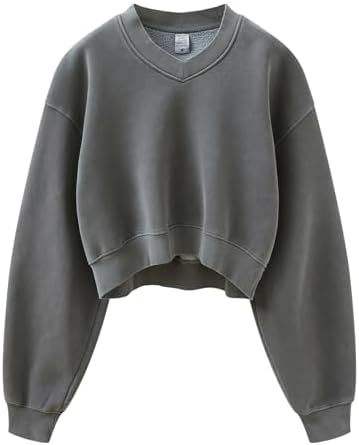 Sweat-shirts et pulls à capuche pour femmes en velours côtelé rétro lavé, col en V, imperméables, respirants, en élasthanne/coton, hiver, courts