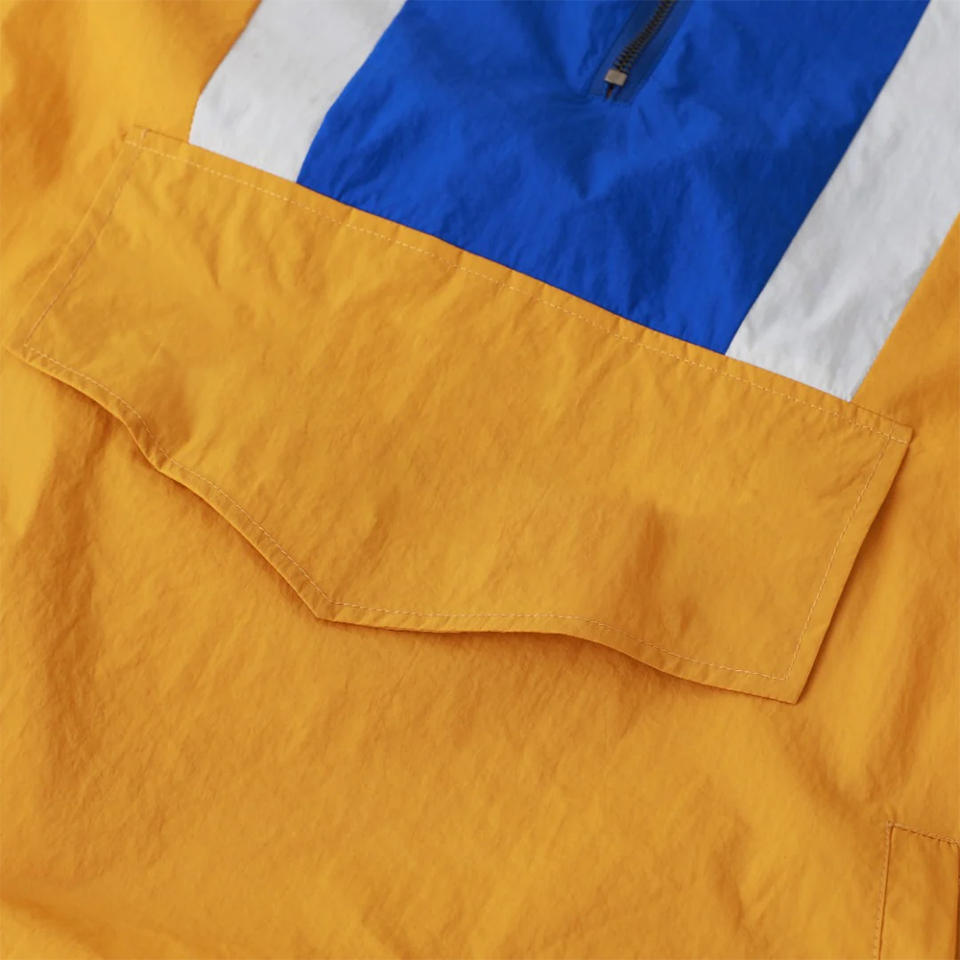 Veste coupe-vent imperméable rétro à blocs de couleur grande taille avec demi-fermeture éclair, capuche et poche kangourou, coupe-vent, coque rigide, pour le streetwear et l'extérieur