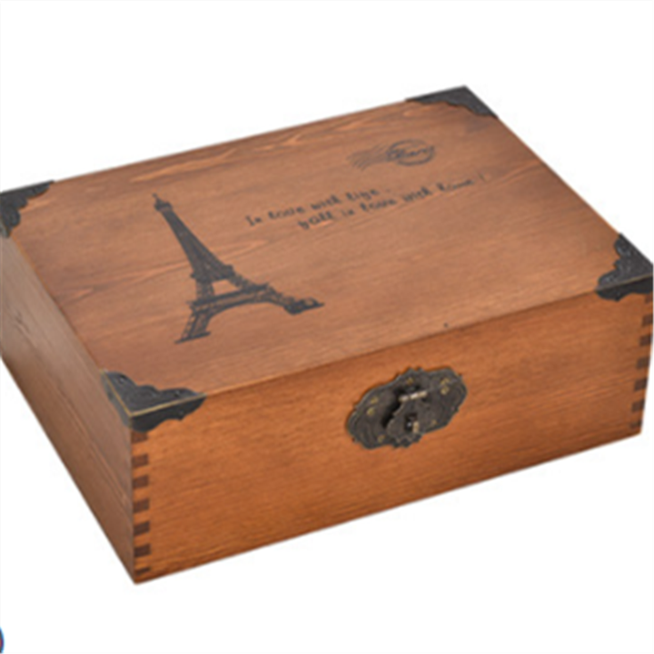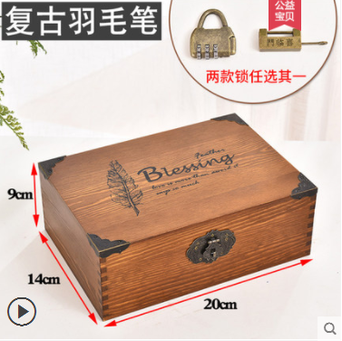 Boîte de rangement de bureau en bois rétro avec serrure boîtes en bois massif divers ménagers boîte de certificat de bureau