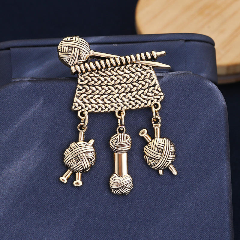 Broche rétro en laine tricotée, accessoire vestimentaire, pour jeans, taille cintrée, ou costume, badge métallique décoratif