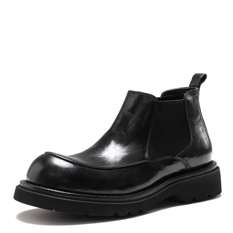 Bottes Chelsea décontractées en cuir véritable pour hommes, à bout rond rétro, à la mode, chaudes à la cheville avec isolation supplémentaire, automne