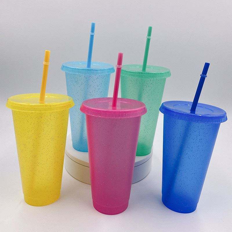 Reusable 16Oz 24Oz Glitter Plastic LGBT Pride Cups with Lids & Straws Leak-Proof for Cold Water Party Use Colorful Lids