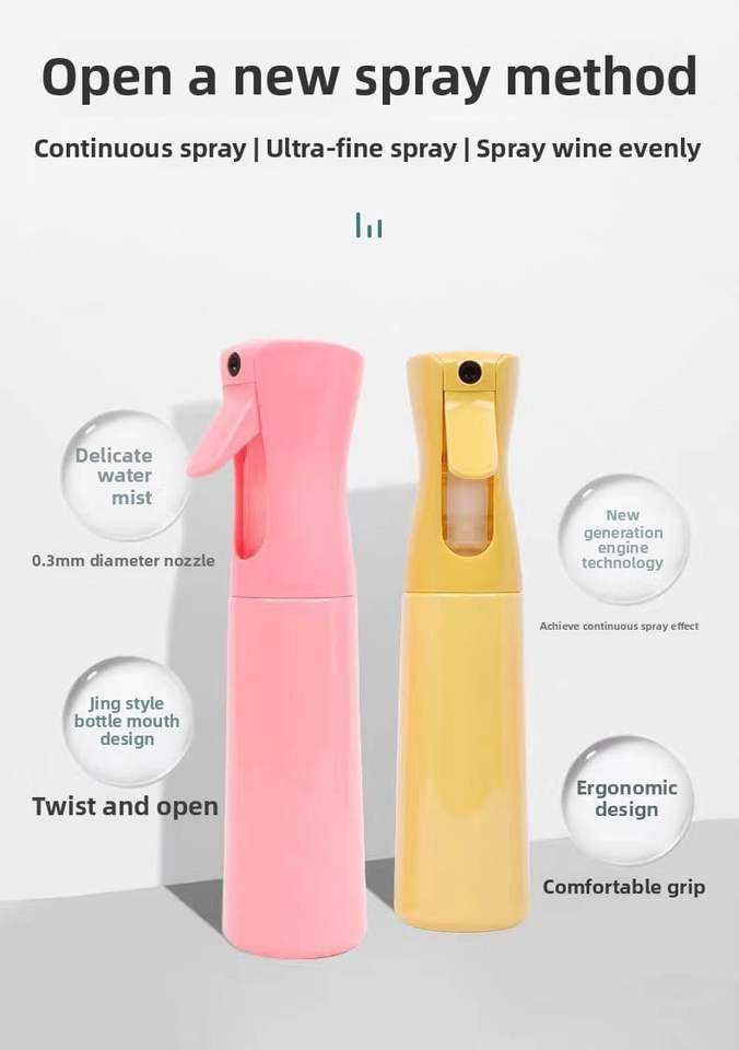Bouteille pulvérisateur en plastique à brume fine continue réutilisable de 200 ml, 300 ml, 10 oz, 500 ml pour salon de coiffure