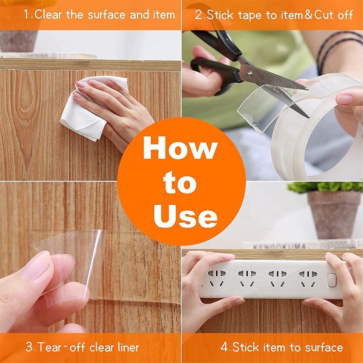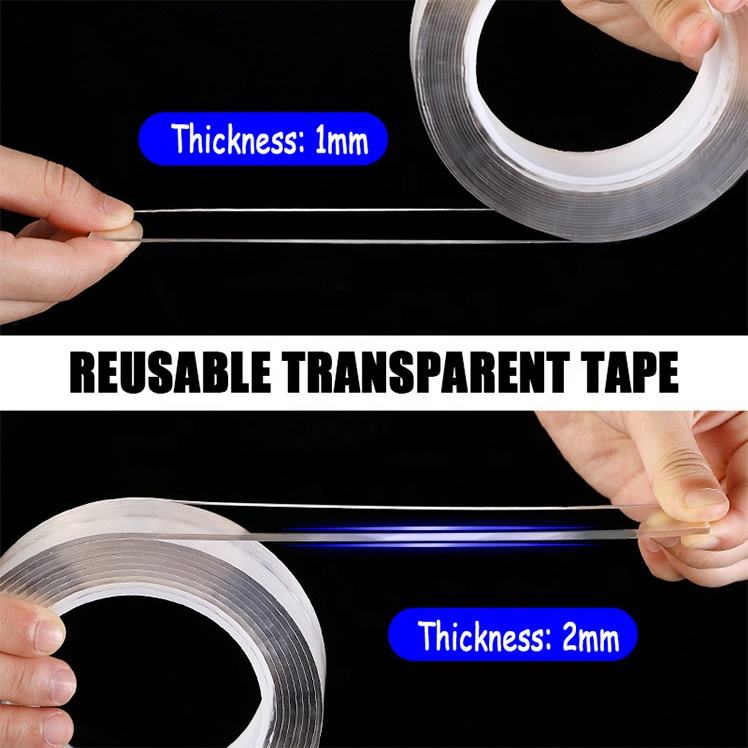 Ruban adhésif double face en mousse acrylique réutilisable pour voiture, gel de couture de tapis auto-adhésif à forte viscosité, nano ruban transparent