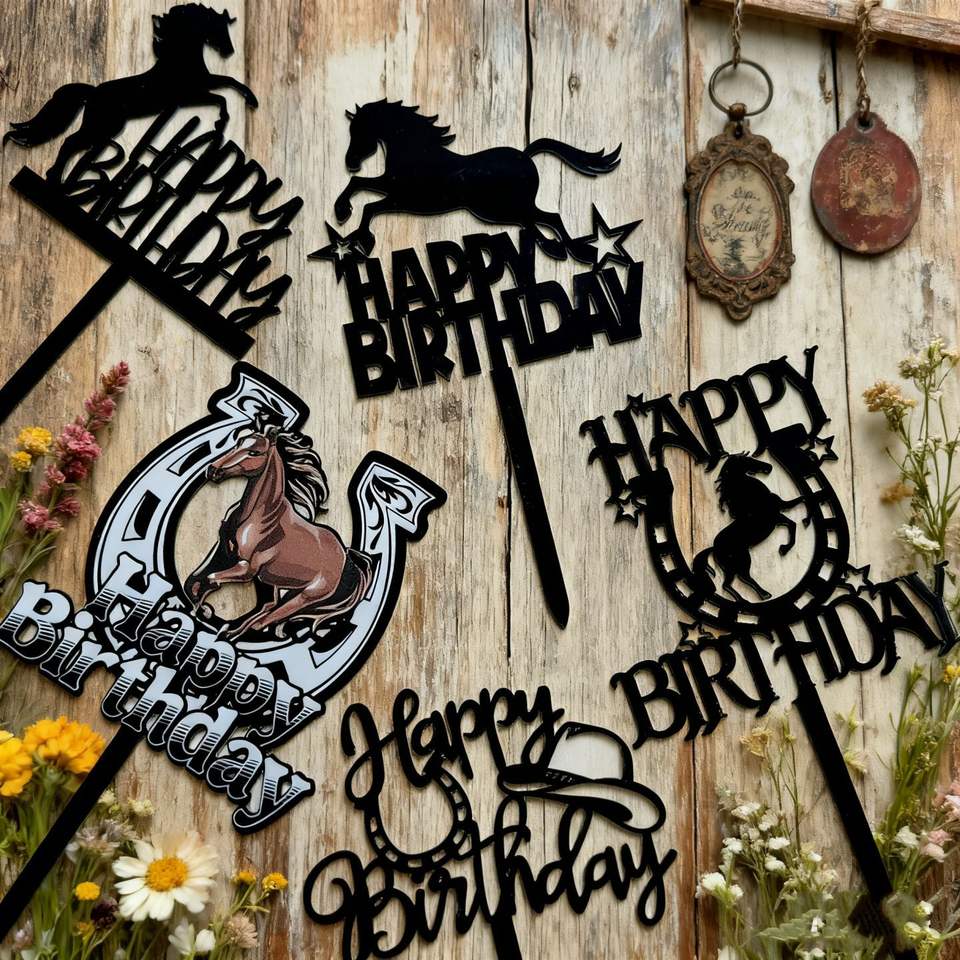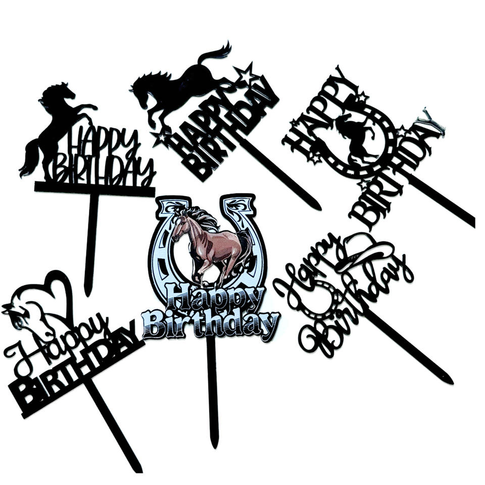 Décorations de gâteau d'anniversaire réutilisables en acrylique, écologiques, style Ins, à thème équestre, pour l'exportation, fournitures de fête