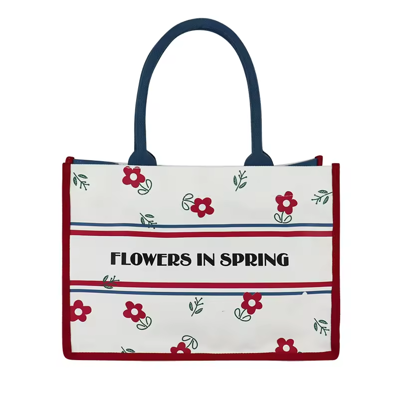 Sac fourre-tout en toile réutilisable et écologique Sacs à main avec logo imprimé personnalisé et motif de fleurs avec doublure en coton à usage promotionnel