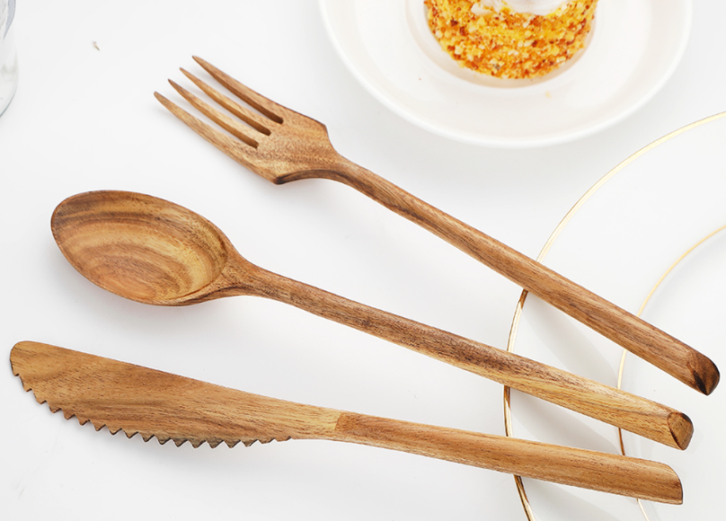 Product name:Natural Wood Cutlery knife fork spoon set