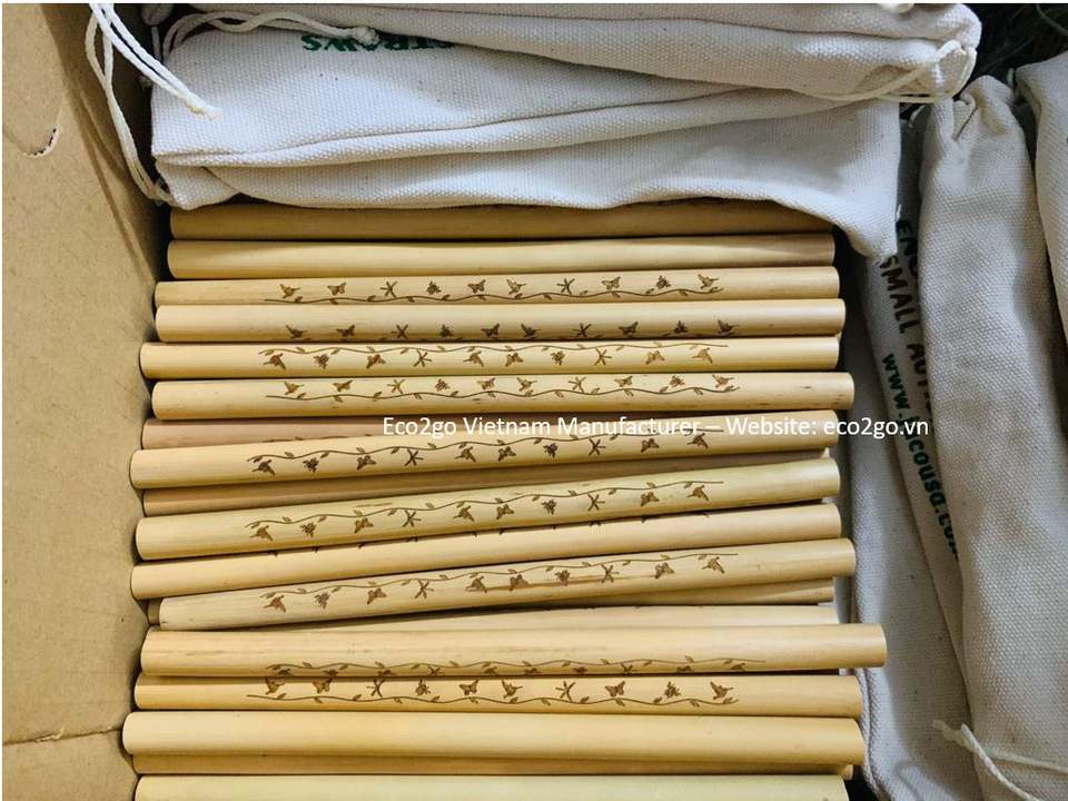 Eco2go Vietnam Pailles en bambou naturel réutilisables faites à la main pour une utilisation en fête Logo laser personnalisé biodégradable et durable