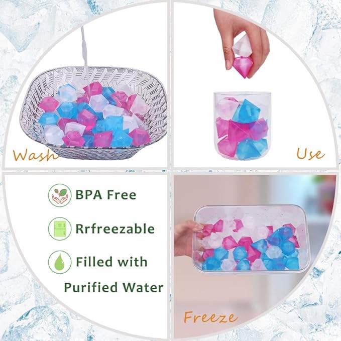 Glaçon réutilisable en plastique, silicone, diamant coloré pour boissons, vin, glaçons de refroidissement non fondants pour glacières