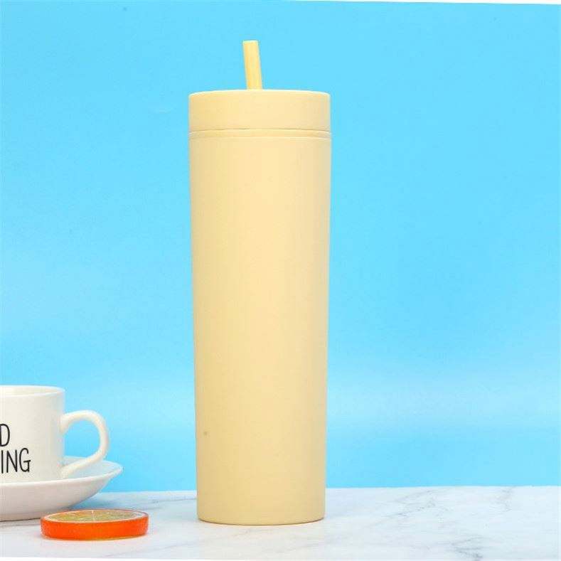 Gobelets réutilisables en acrylique mat avec couvercles Gobelets minces en plastique à double paroi de 16oz avec couvercle et paille
