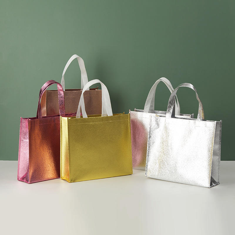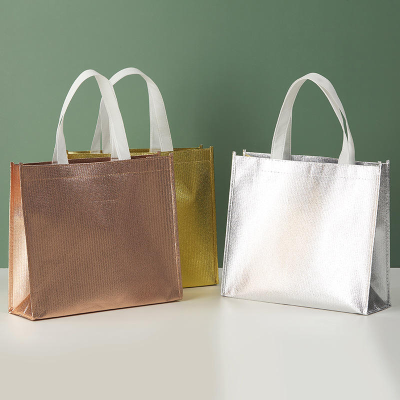 Emballage de mariage en tissu argenté avec logo de fête réutilisable Petits sacs de cadeaux de Noël personnalisés de luxe pour petite entreprise