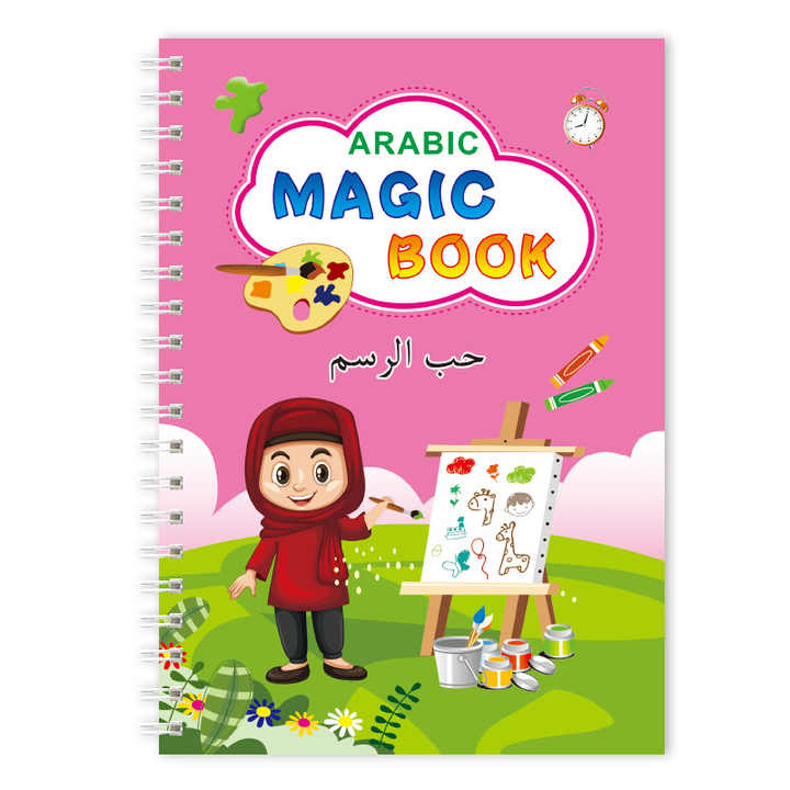 Cahier d'écriture réutilisable pour la pratique de la calligraphie magique, lot de 4 livres, écriture arabe, apprentissage éducatif pour enfants