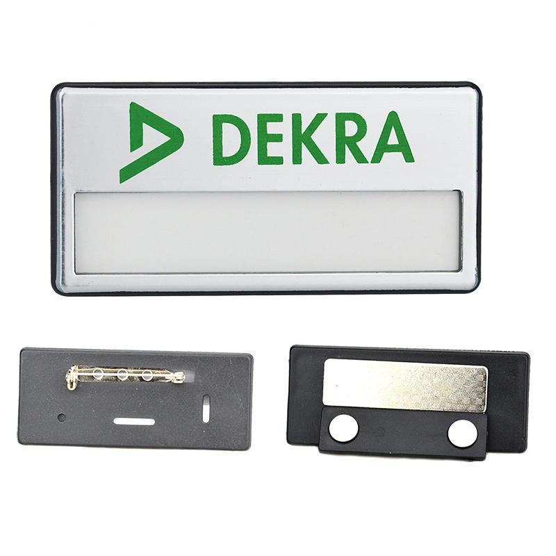 Badges nominatifs rectangulaires réutilisables écologiques – Fabricant en gros de plaques nominatives gaufrées, logo personnalisé, badges magnétiques vierges en plastique