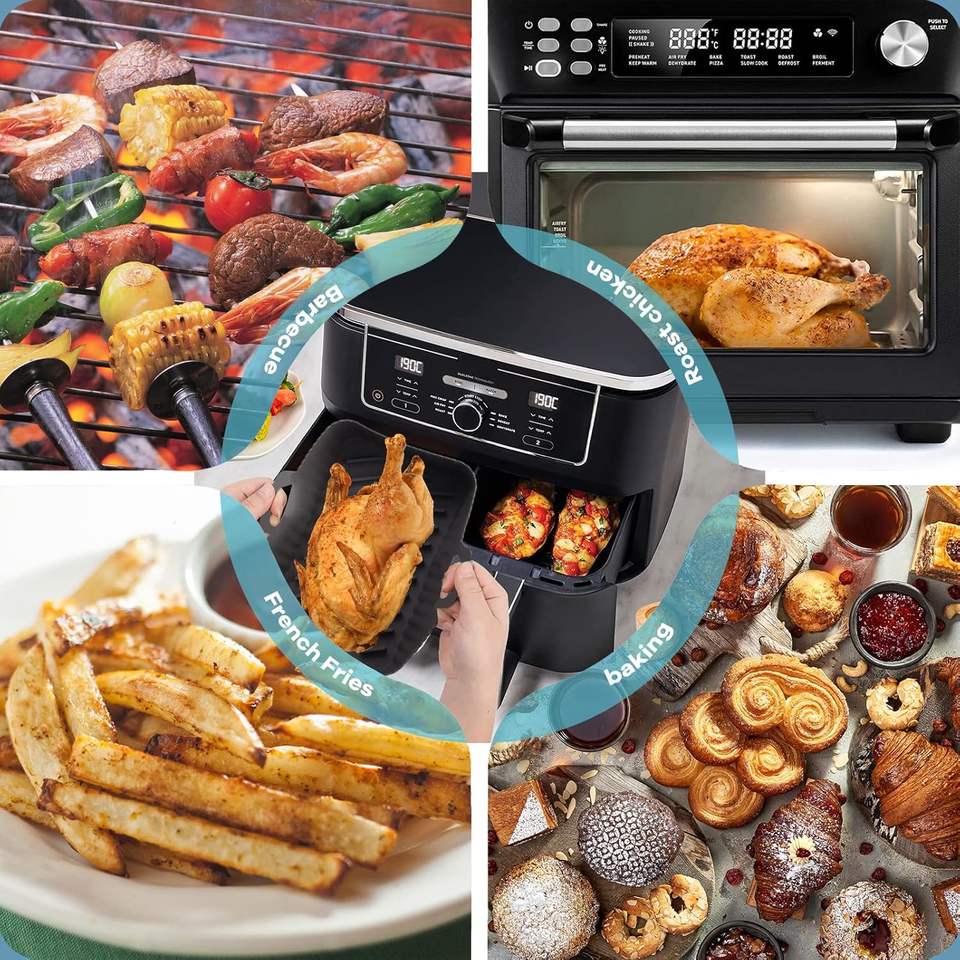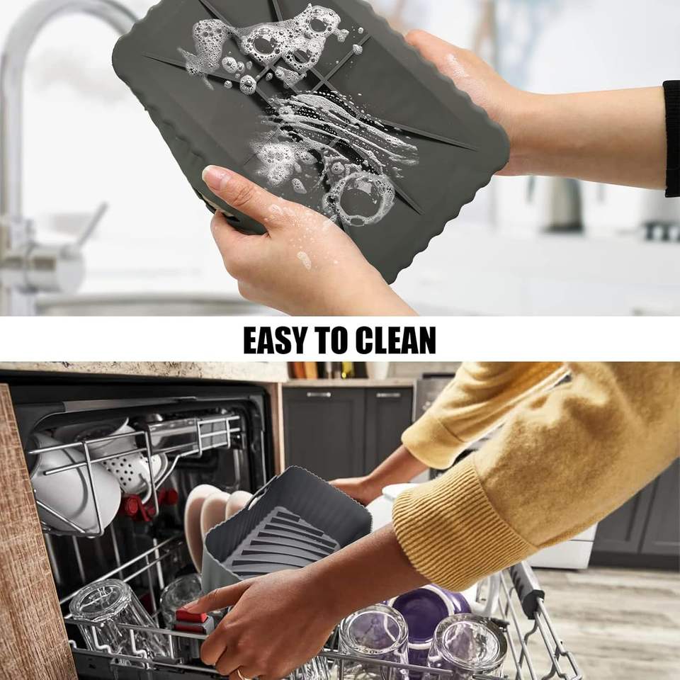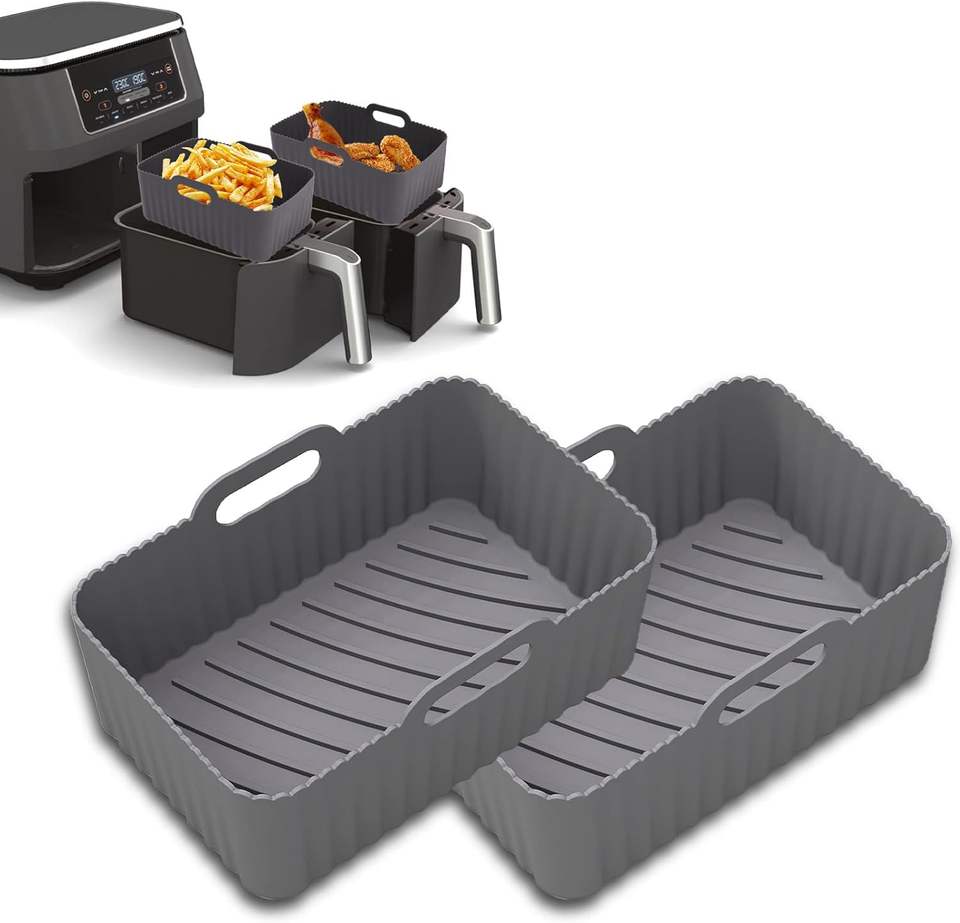 Revêtement de friteuse à air rectangulaire réutilisable en silicone de qualité alimentaire, antiadhésif, résistant à la chaleur, sans BPA, pour friteuse à air à double panier