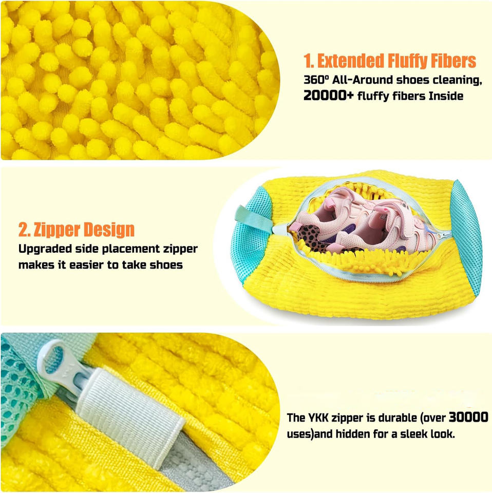 Sac de lavage réutilisable pour chaussures et baskets avec fermeture éclair pour machine à laver et sèche-linge