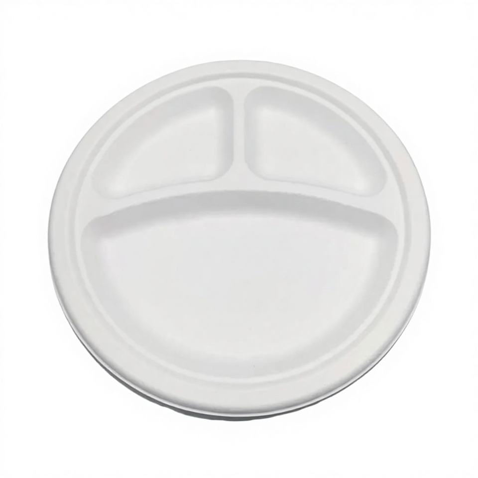Assiettes réutilisables en bagasse avec compartiment pour accompagnements, idéales pour les soirées, les tacos et les sauces.