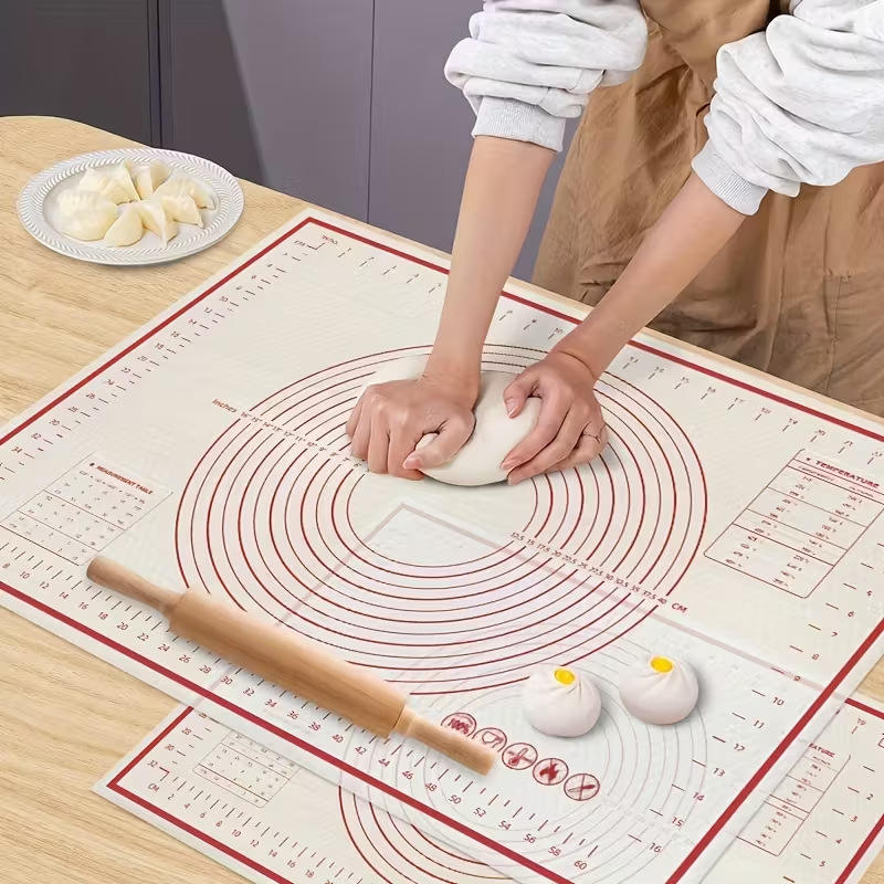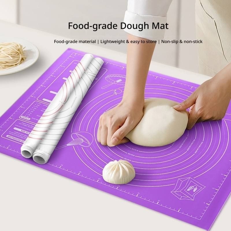Tapis de cuisson réutilisable en silicone anti-salissures avec échelle pour la préparation de la pâte à pain, gâteaux et pâtisseries faits maison