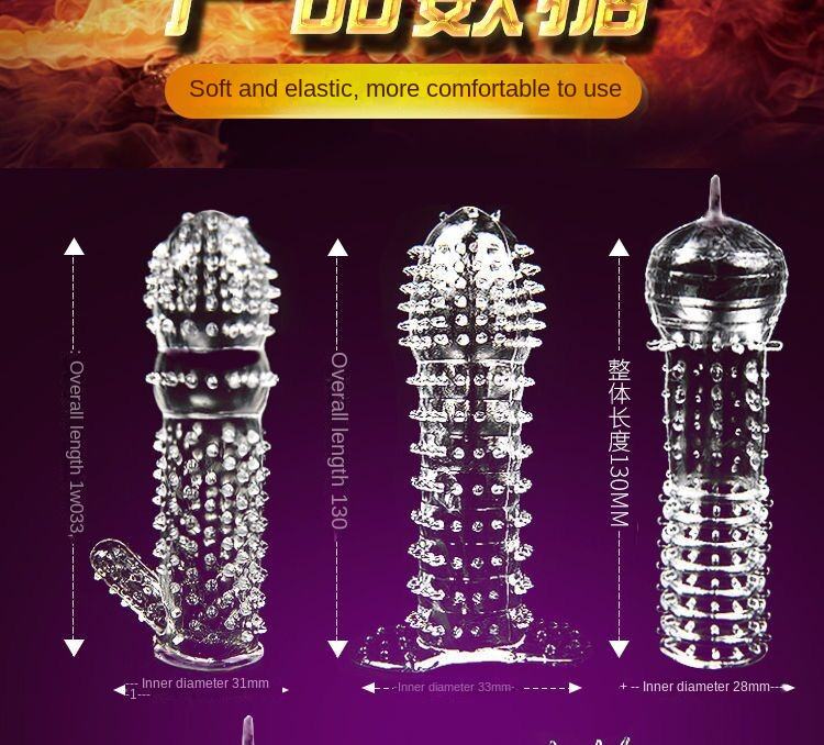 Préservatif en silicone réutilisable à picots pour hommes - Design extra large à picots pour allonger et stimuler, texture audacieuse pour usage adulte