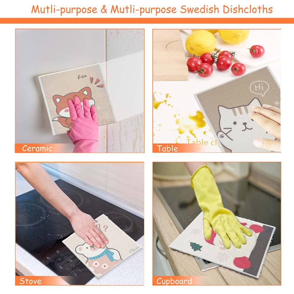 Serviettes de cuisine douces réutilisables, chiffons à vaisselle, chiffon à vaisselle suédois, chiffon à vaisselle en cellulose, éponge de cuisine, serviette de nettoyage