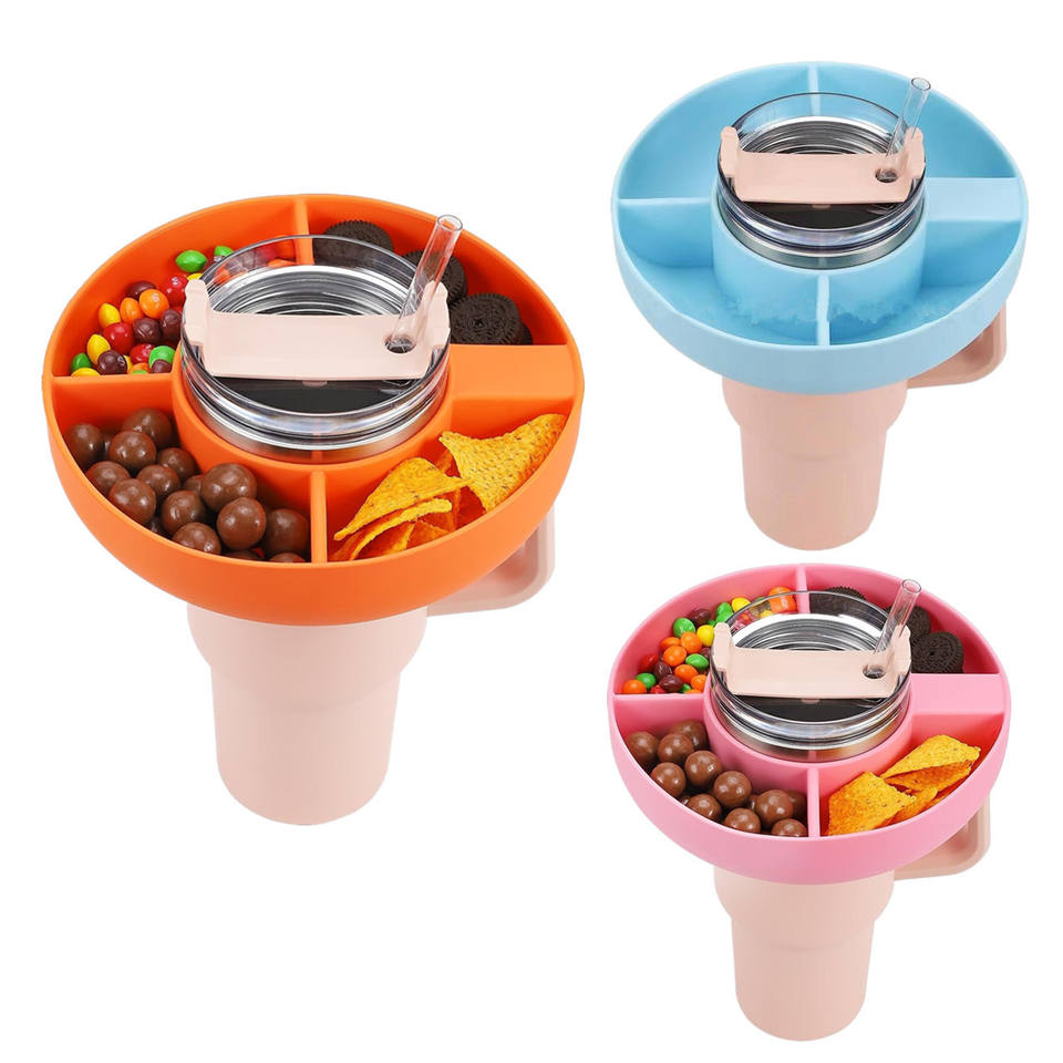 Plateau à collation en silicone réutilisable, adapté aux gobelets Stanley de 40 oz, organisateur de vaisselle pour des collations pratiques