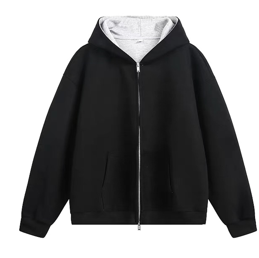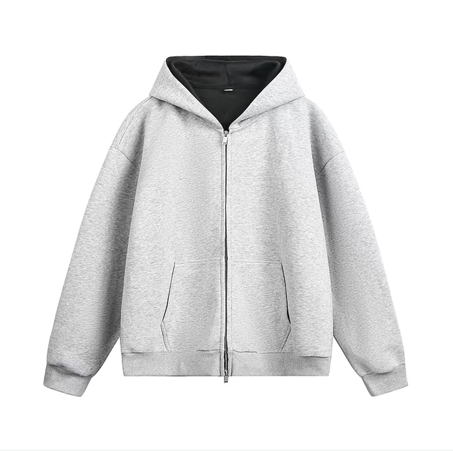 Sweat à capuche réversible pour homme en tissu Air-layer avec fermeture éclair double, personnalisable, uni