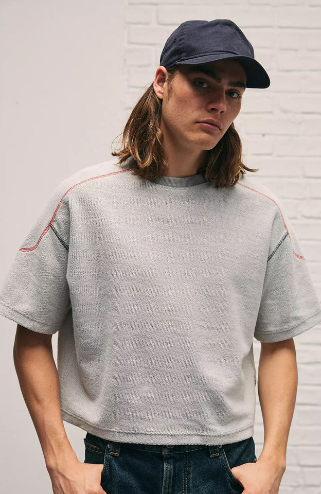 T-shirt coupe boxy à l'envers en éponge à point inversé avec coutures exposées Streetwear 100% coton T-shirts à logo personnalisé lourd de qualité supérieure