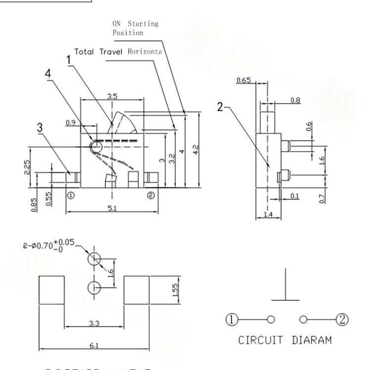 Micro-interrupteur inversé et ultra-miniature, KFC-C-16B, interrupteur de fin de course tactile SMD à 2 broches pour détection rapide du réinitialisation, normalement ouvert (NO)
