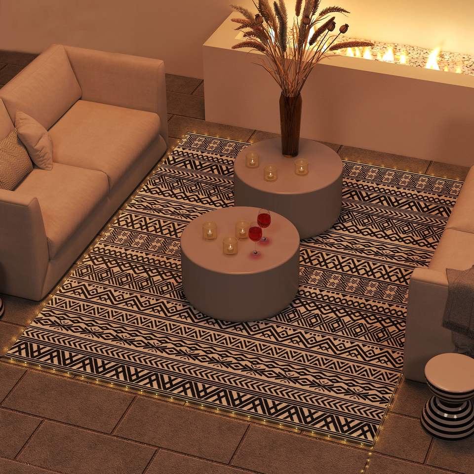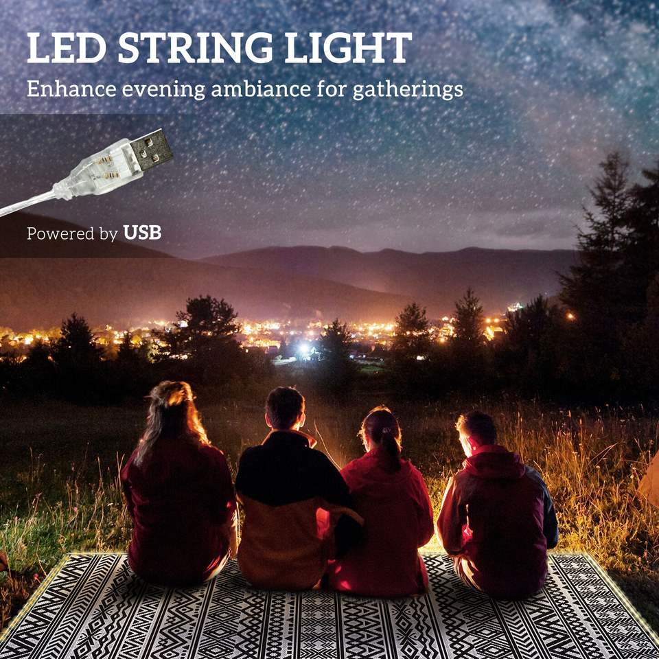 Tapis d'extérieur réversible 10 x 8 avec lumières USB et sac de transport pour le camping et les terrasses
