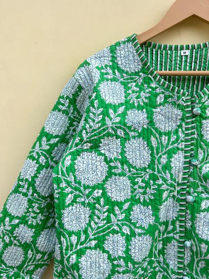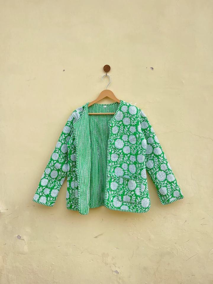 Manteau réversible en coton Sari Kantha Long Hand Block Print Veste matelassée en cuir XXL Blazer Pattern
