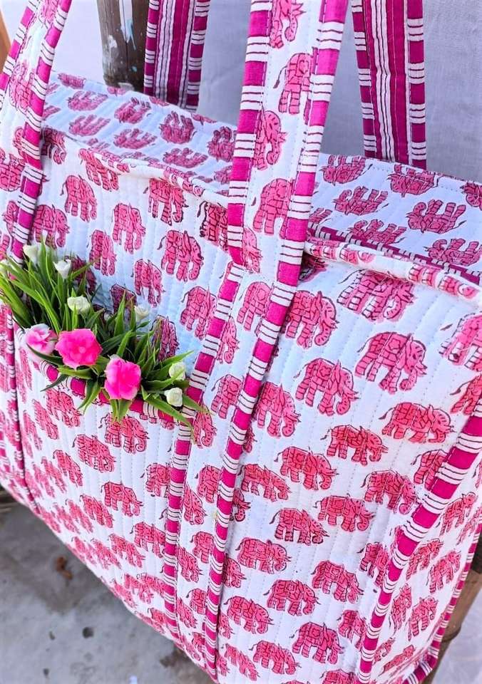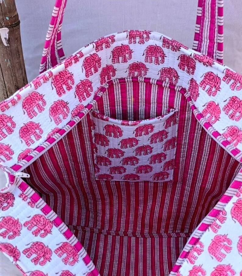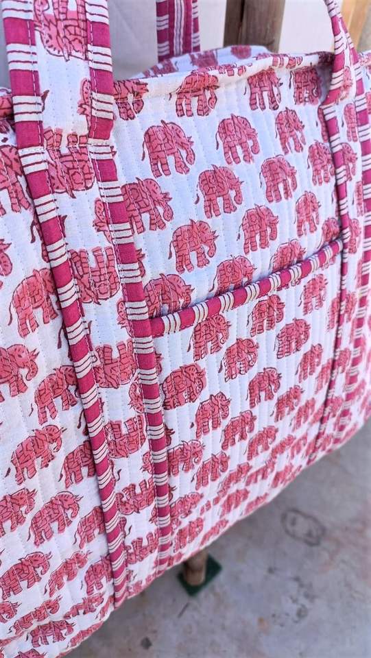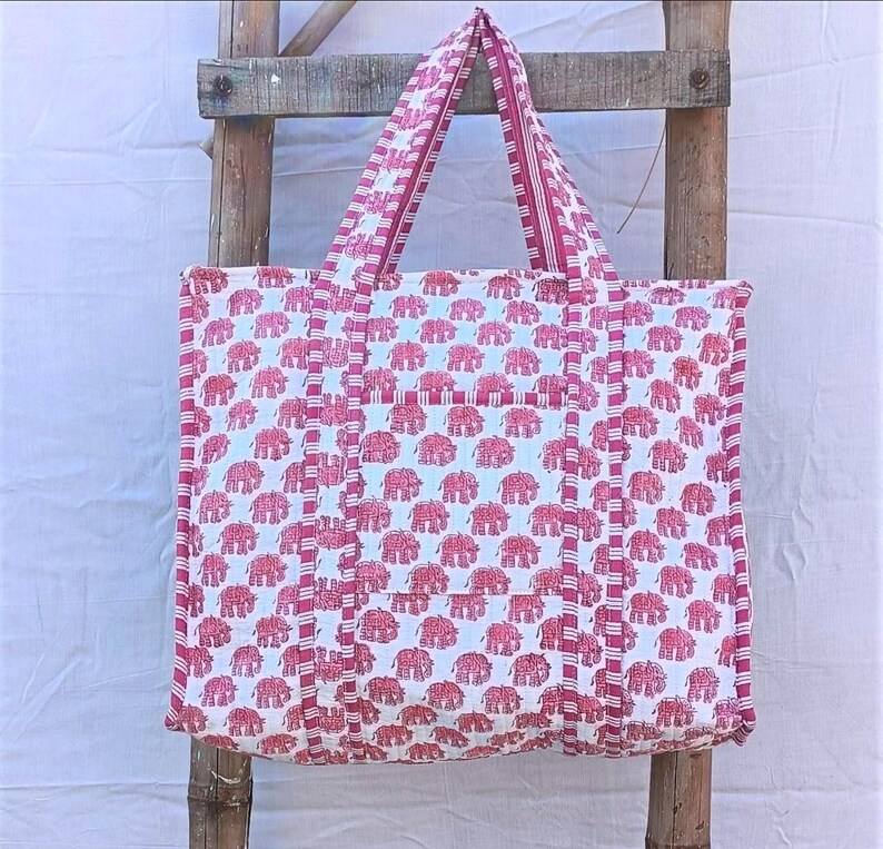 Sac fourre-tout réversible en coton matelassé imprimé éléphant style Kantha, sac à bandoulière pour voyage et shopping