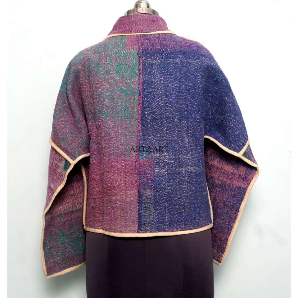 Veste Kantha en coton tricoté longue, réversible, nouveau design, pour femmes, automne, écologique, séchage rapide, patchwork, broderie