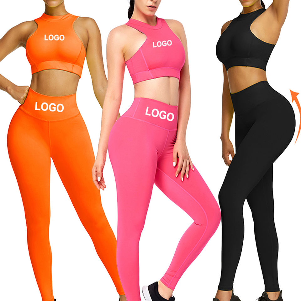 Ensemble de yoga pour femmes avec logo personnalisé à prix réversible, jogging de fitness de grande taille à couleur unie, deux pièces sans couture pour la course à pied