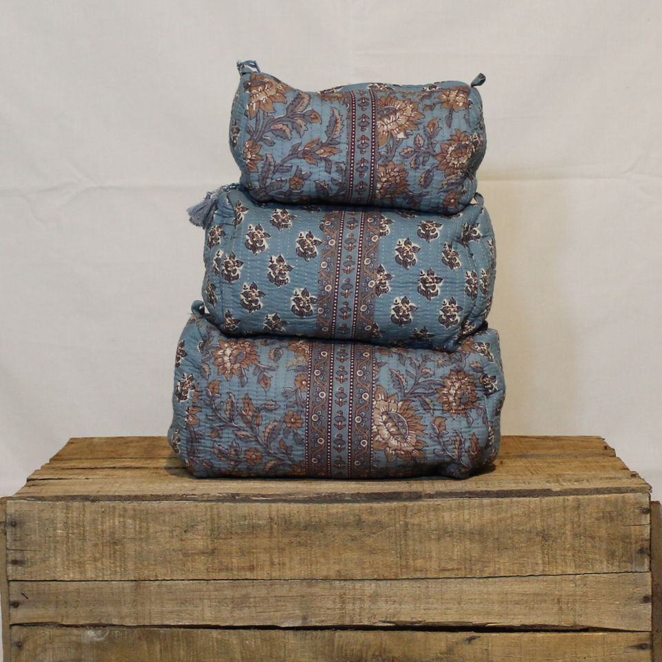 Ensemble de 3 trousses de toilette réversibles en coton matelassé écologique avec fermeture éclair, motif floral