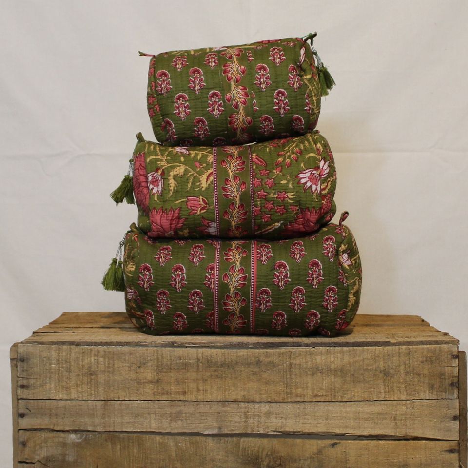 Étui zippé en coton matelassé réversible et écologique pour sac, lot de 3 pochettes cosmétiques portables florales faites à la main pour le voyage