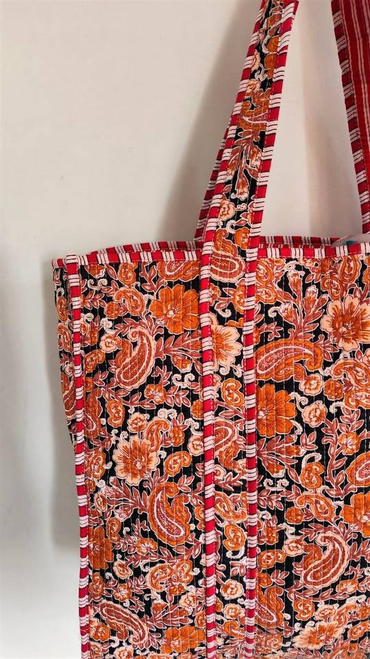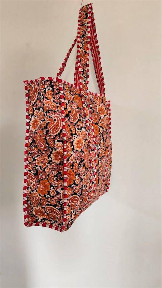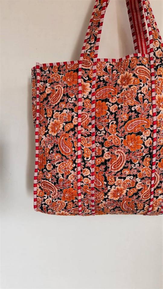 Sac fourre-tout réversible en coton matelassé, motif floral Kantha, grand sac à main écologique pour le shopping et les voyages