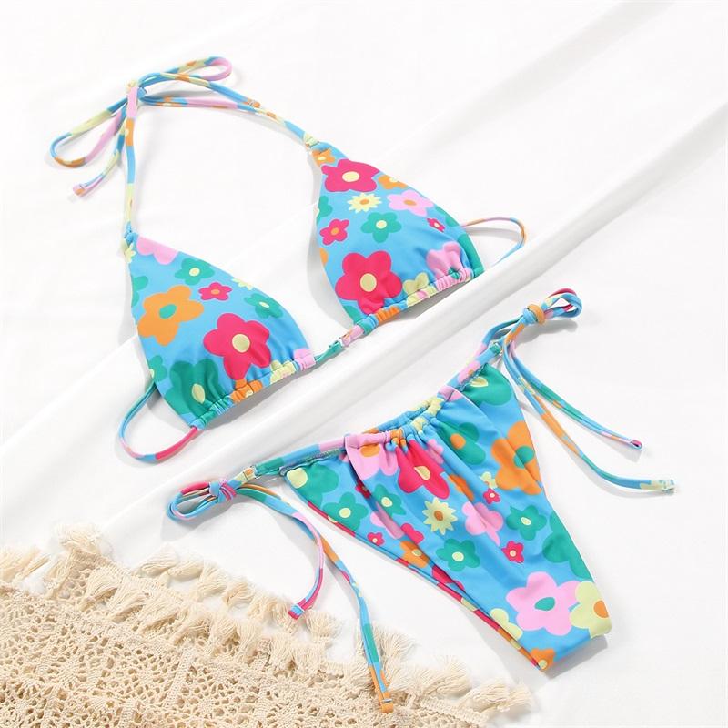 Nom du produit:Bikini effronté brésilien imprimé, bikinis à lacets sans cordes