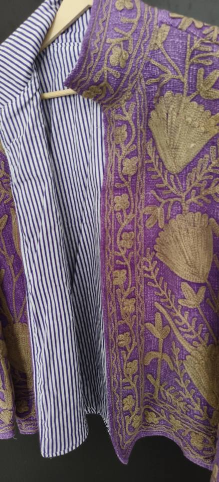 Veste matelassée réversible Suzani, marron, brodée de fleurs, respirante, en coton artisanal, broderie Crewel du Cachemire