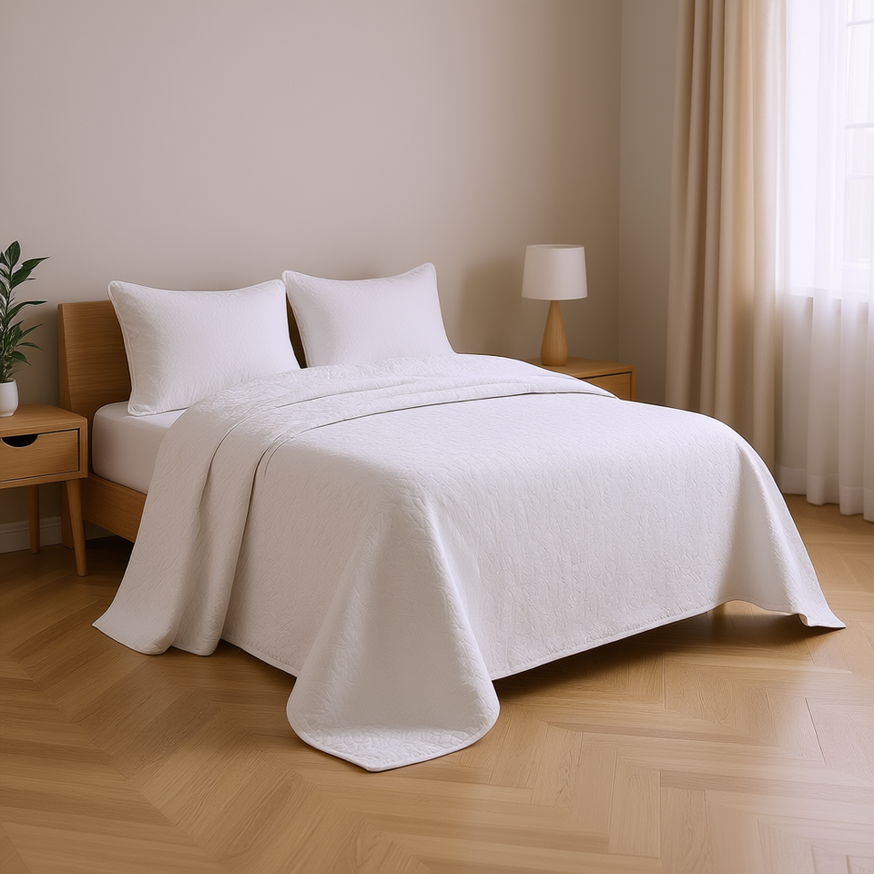 Ensemble de couvre-lit réversible pour lit double, en coton blanc, motif uni cousu, style confortable, literie