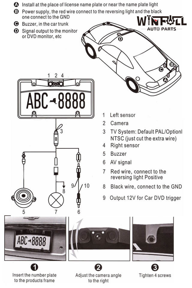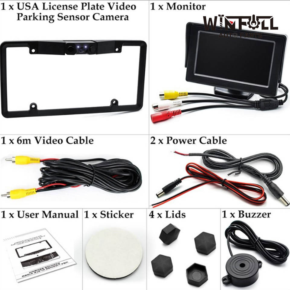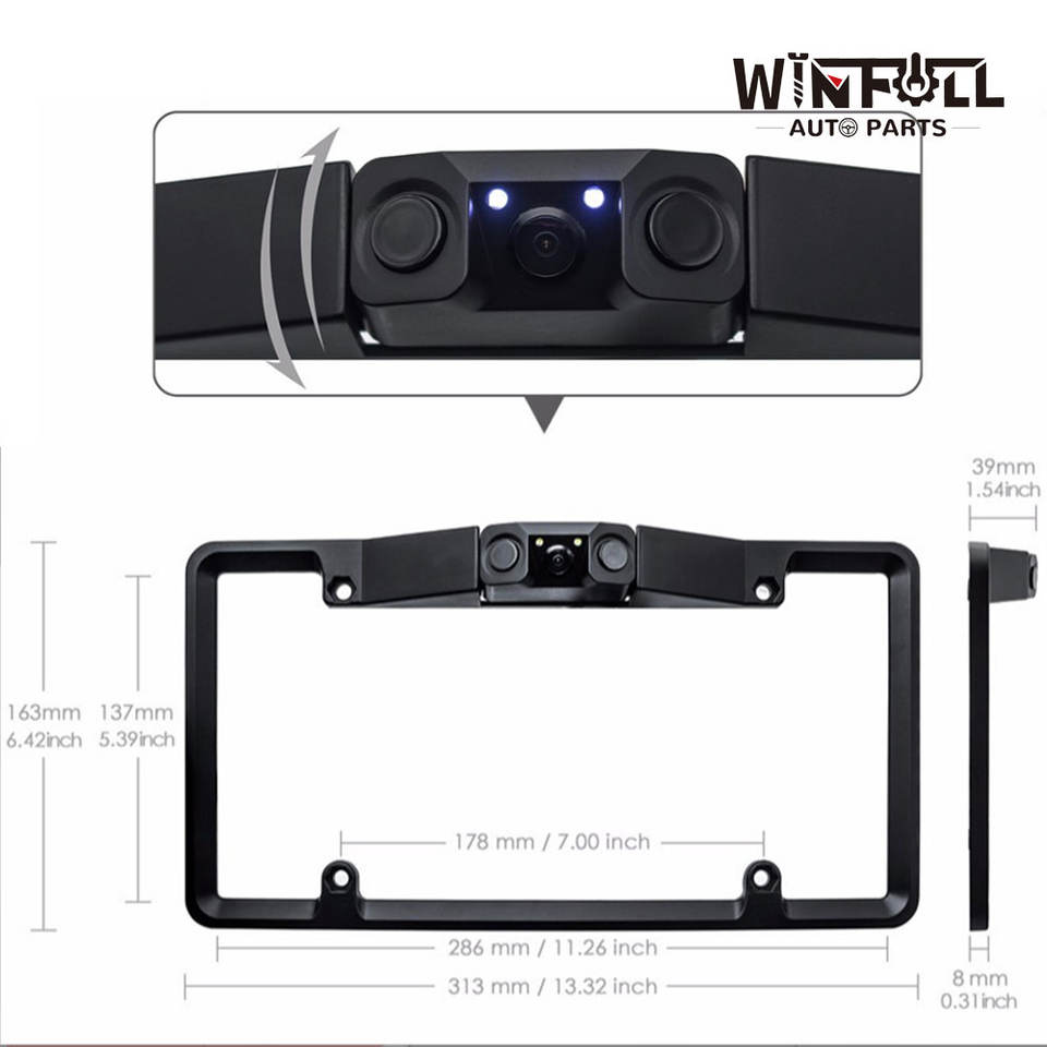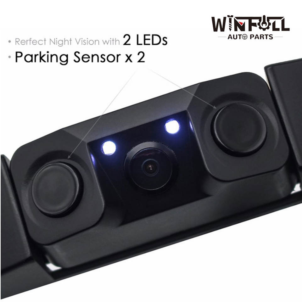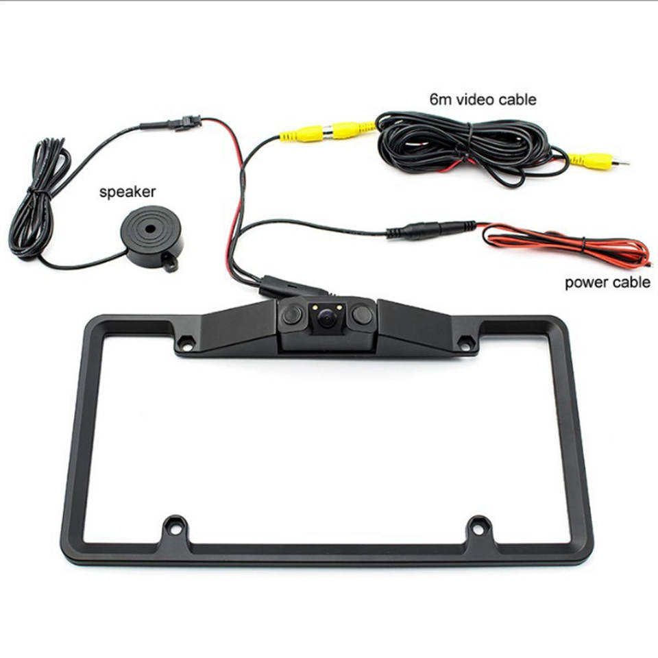 Caméra de recul 3-en-1 avec capteur de stationnement vidéo pour plaque d'immatriculation américaine, sans perçage