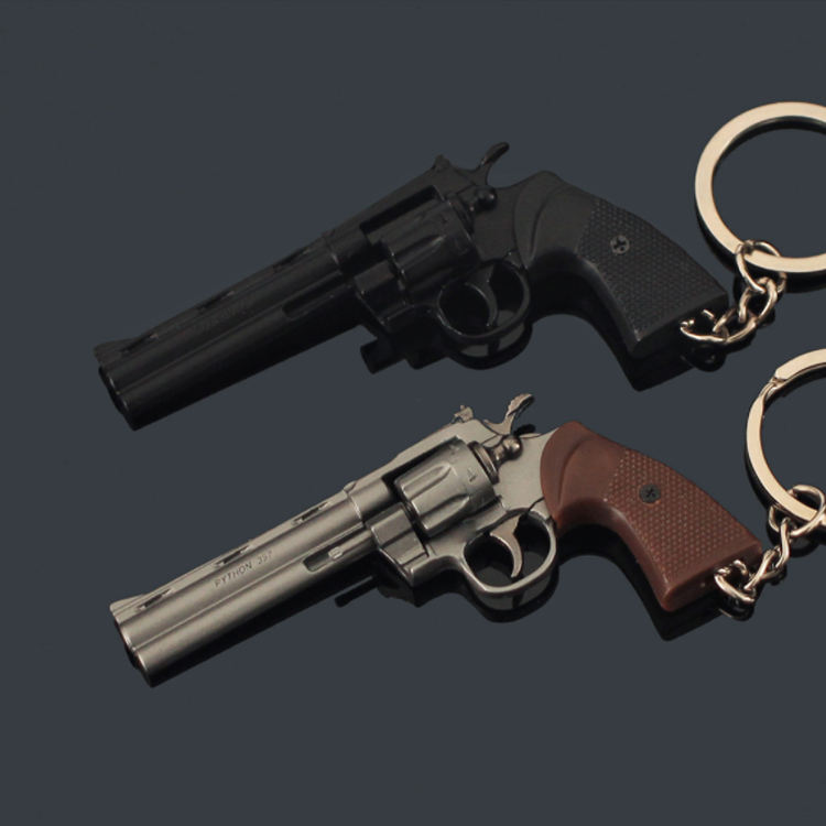 Silver BZ-9003 Porte‑clés en forme de revolver 7 cm en alliage de zinc et ABS — réaliste, étanche, logo personnalisable