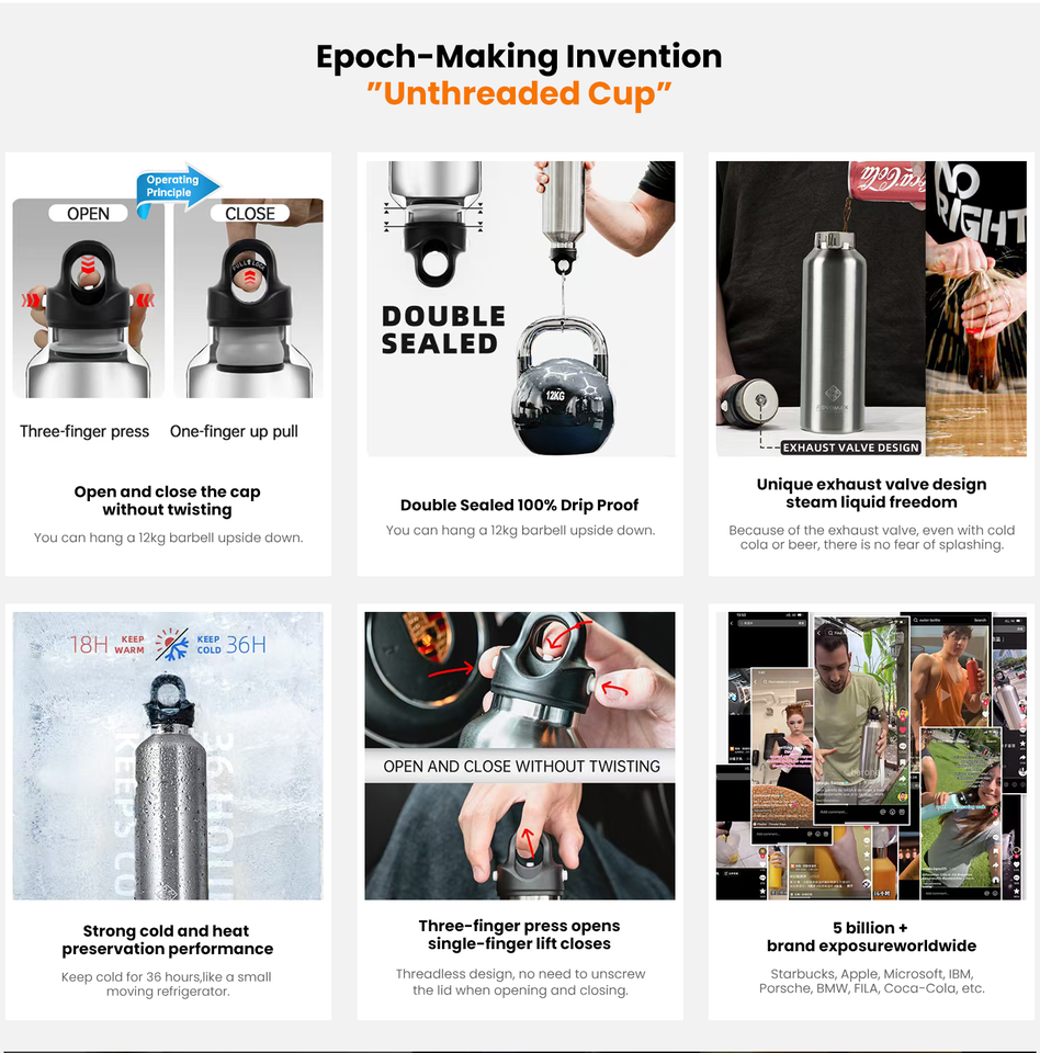 Revomax Thermos isolé Ouverture à une main 2 secondes 18H Chaud 36H Froid 100% étanche Finition mate Sans transpiration Cadeau d'affaires