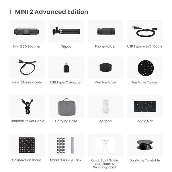 Scanner 3D Revopoint MINI 2 Advanced, vitesse de numérisation jusqu'à 16 images par seconde, distance de travail 120 mm - 250 mm, scanner 3D haute précision