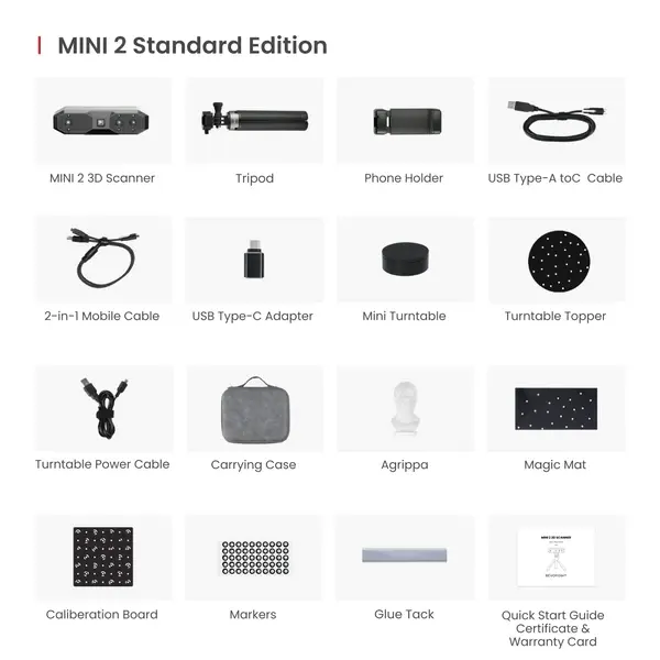 Scanner 3D Revopoint MINI 2 Standard, vitesse de numérisation de 16 images par seconde, scanner 3D à lumière bleue, haute précision 0,02 mm, scanner laser 3D