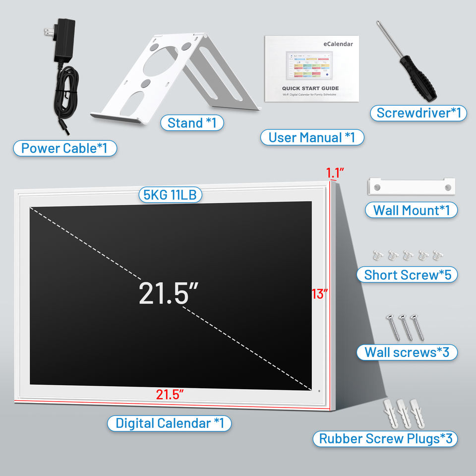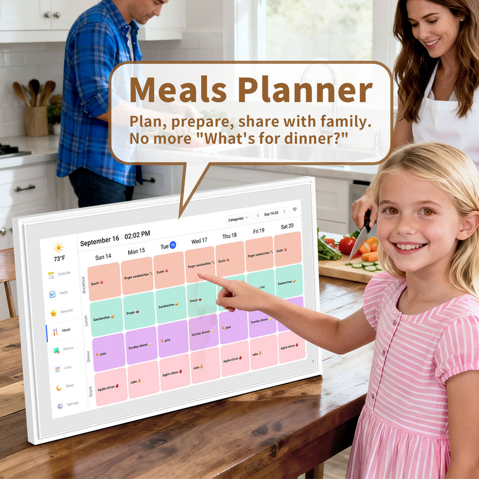 Calendrier numérique pour enfants avec récompenses, 21,5 pouces, compatible Google, ISO, COZI, Yahoo, avec plan repas