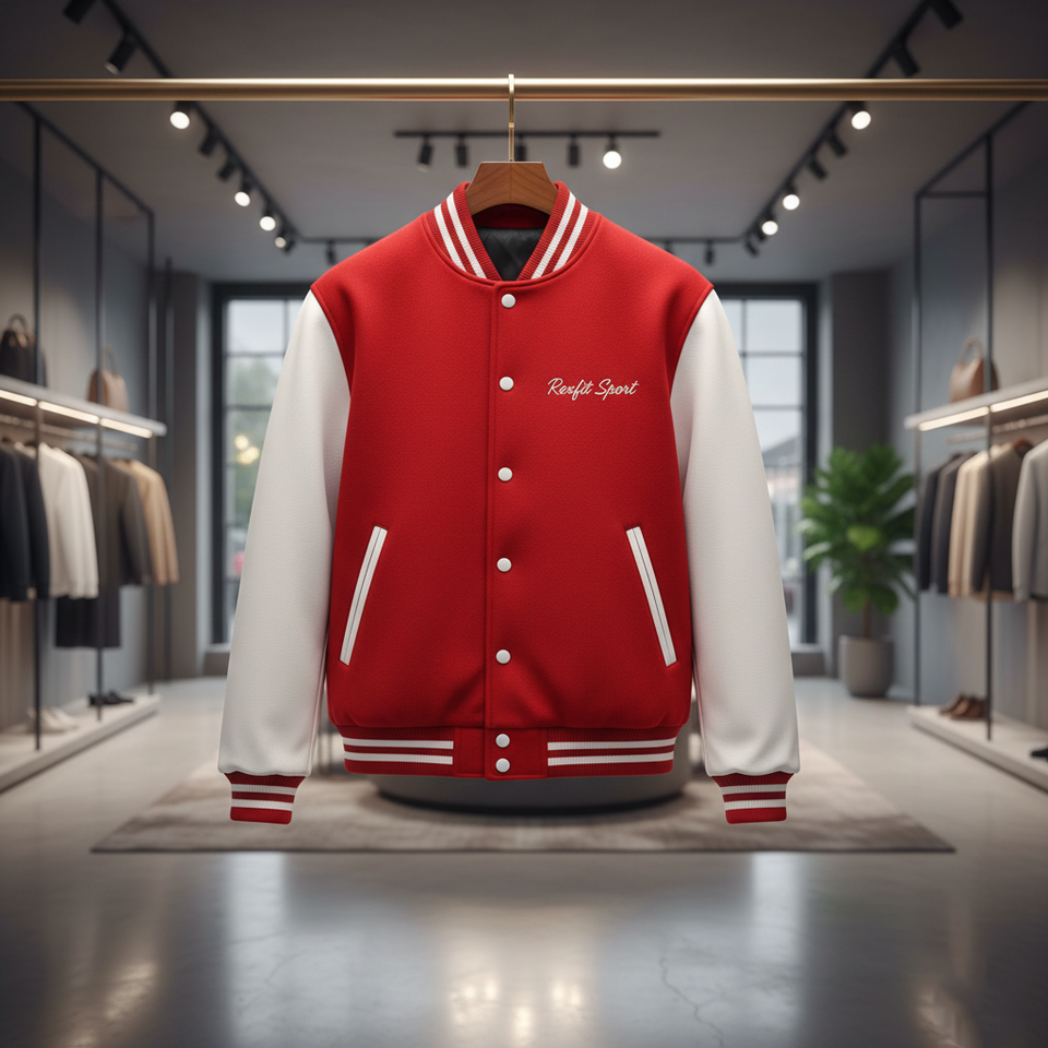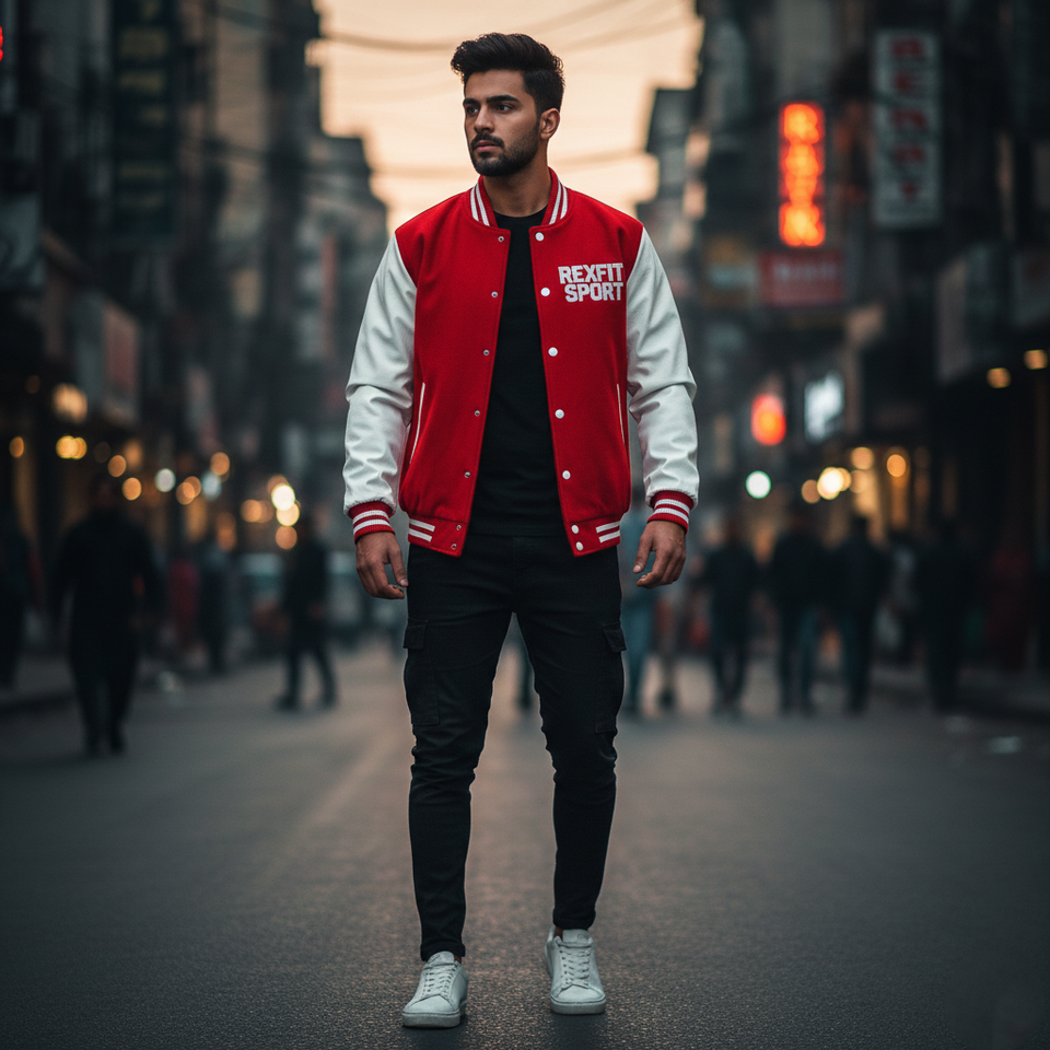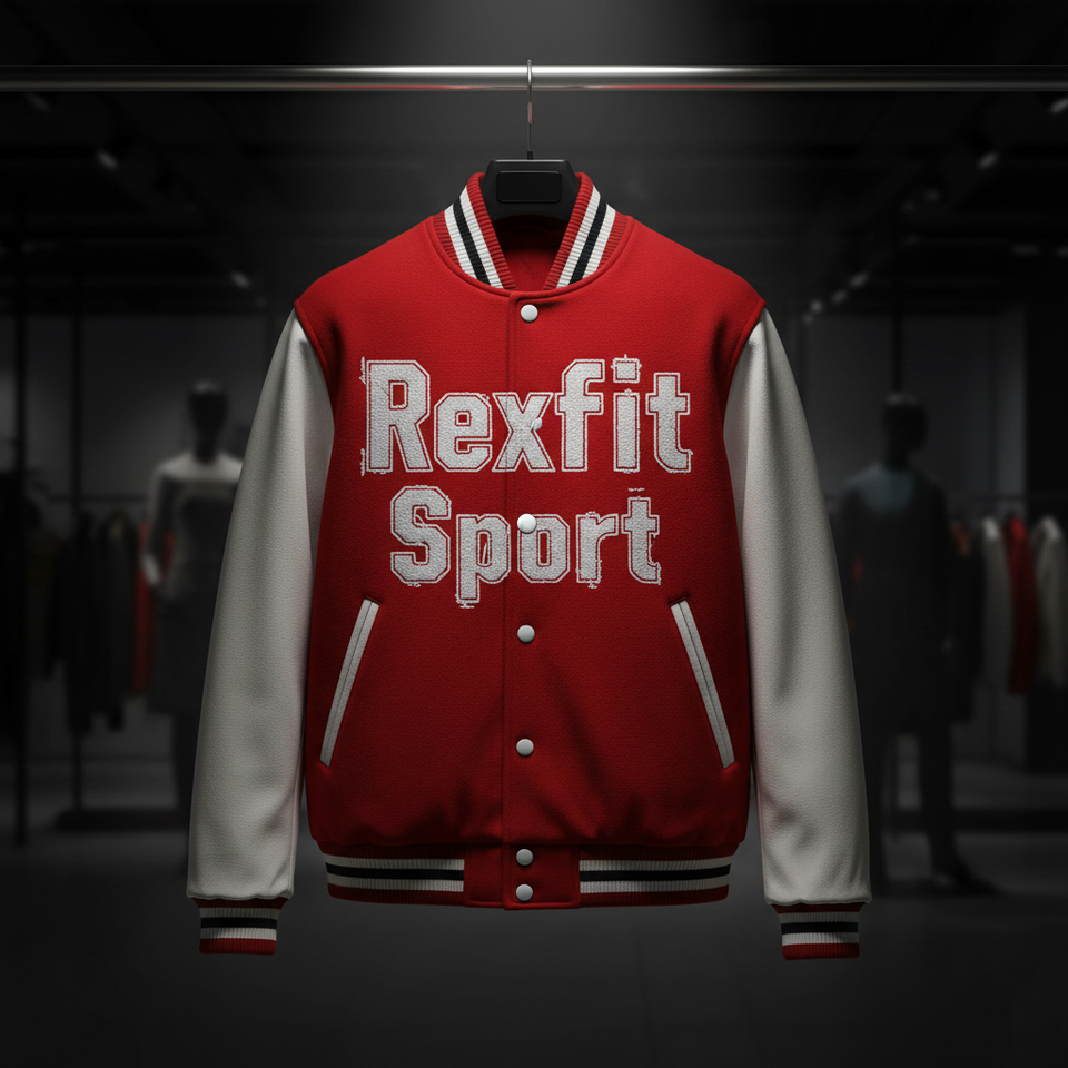 Veste de baseball personnalisée pour homme RexFit Sport, style varsity, hiver, manches en cuir, logo brodé, OEM