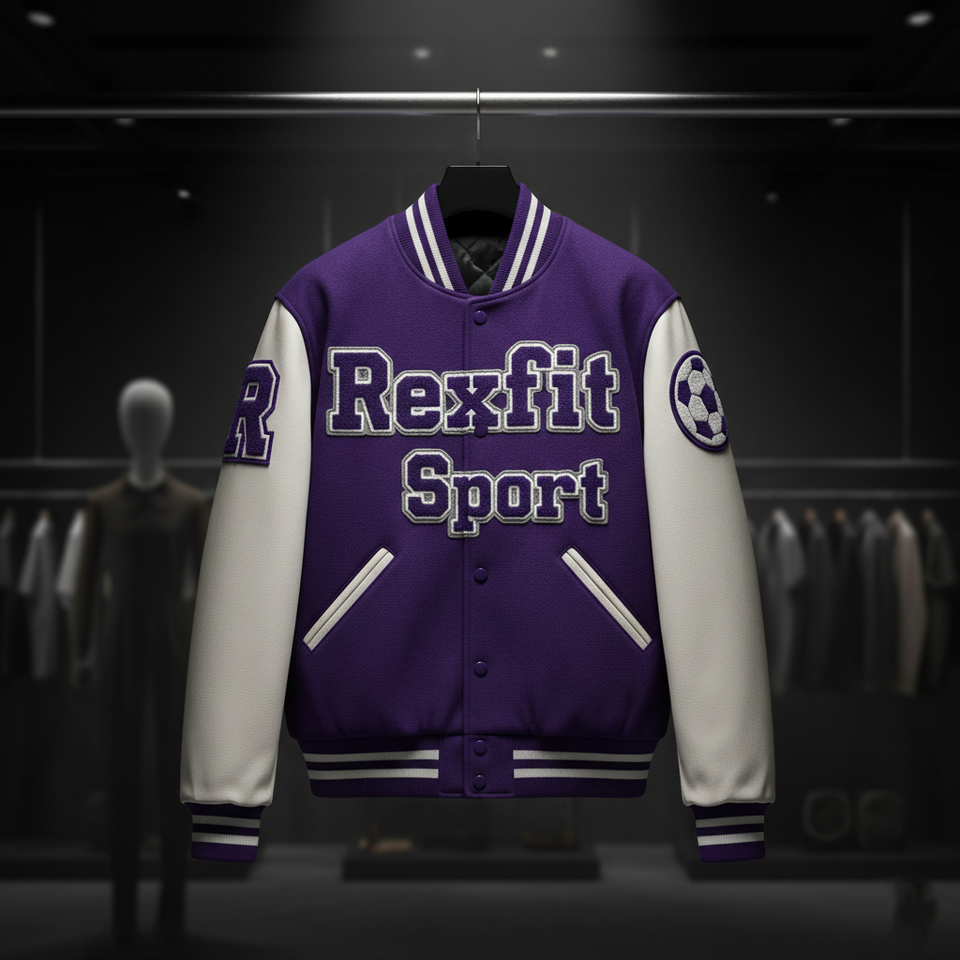 Veste de baseball d'hiver pour homme RexFit Sport personnalisée, style varsity, avec manches en cuir PU, logo brodé, fabrication directe d'usine OEM